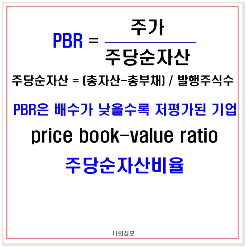 PBR은 주가순자산비율 혹은 주가순자산배율이라고 합니다.